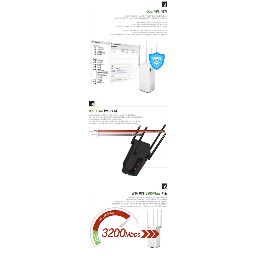Bộ phát wifi EFM ipTIME AX8004MWired/Wireless / Gigabit / AX3200 (Wi-Fi 6) / Maximum Wireless Speed: 2402Mbps / Router Type / Power Plug Type / MediaTek MT7622 / Dual Core / 1.35 GHz / RAM: 512MB / FLASH: 128MB / WAN: 1 Port (Gigabit) / LAN: 4 ports (Gigabit) / USB 3.0: 1 / Dual band / Antenna: 4 / Mesh / MU-MIMO / IPTV support / WOL / Mobile management application / VPN / QoS / Beamforming / OFDMA / Parental control / Controller / Wireless Agent / Wired Agent / 2 Years Warranty