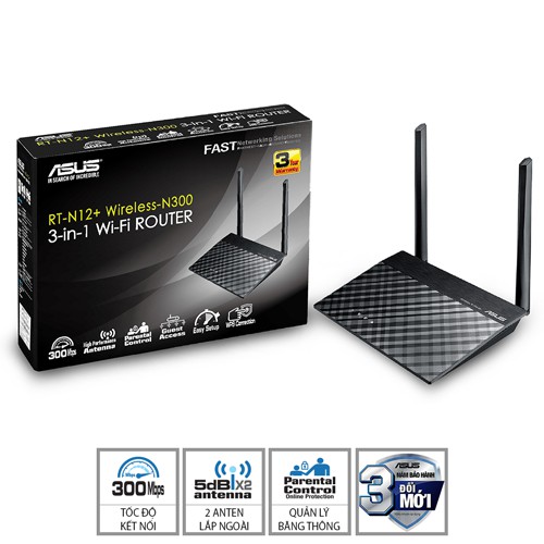 Máy tính & Laptop > Thiết Bị Mạng > Bộ Phát Wifi || [Mã ELMALL1TR giảm 5% đơn 3TR] Bộ Phát Wifi Không Dây Asus RT-N12+ 2 Chuẩn N300 Hỗ Trợ Tính Năng Lặp Sóng Băng TầnCòn hàng