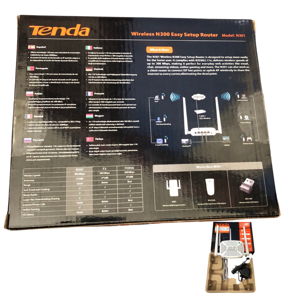 Router Tenda N301 được thiết kế để cài đặt dễ dàng hơn cho người dùng gia đình. Tenda N301 tuân thủ theo chuẩn IEEE802.11n, cung cấp tốc độ không dây lên đến 300Mbps, biến nó trở thành lựa chọn hoàn hảo cho các hoạt động web hàng ngày như gửi email, chat, phát trực tuyến video, chơi game trực tuyến, v.v... N301 cũng có thể hoạt động như một client router để kết nối không dây mạng ISP hoặc AP uplink và chia sẻ Internet đến mọi ngóc ngách, xóa bỏ những “điểm chết” trong nhà.