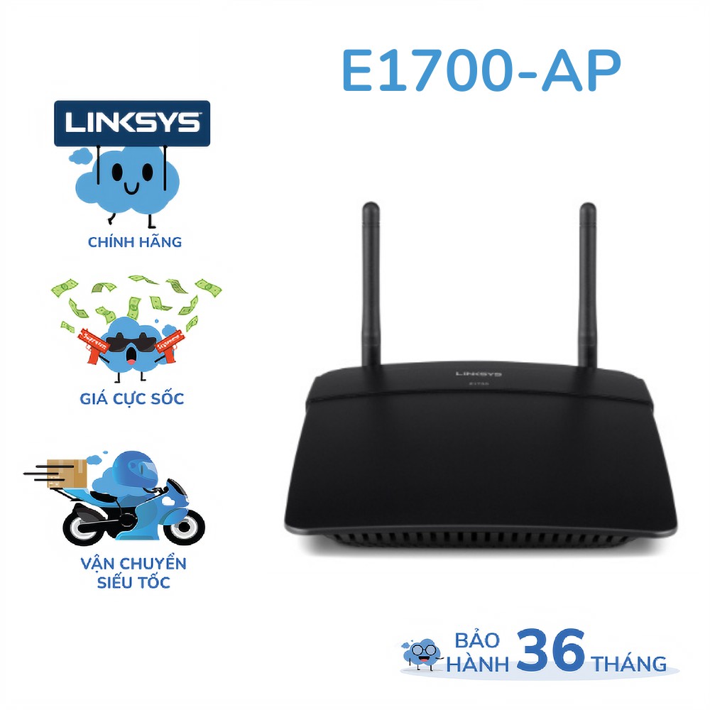 Giới thiệu [Mã BMBAU300 giảm 10% đơn 499K] Bộ phát wifi LINKSYS E1700 chuẩn N tốc độ 300Mbps