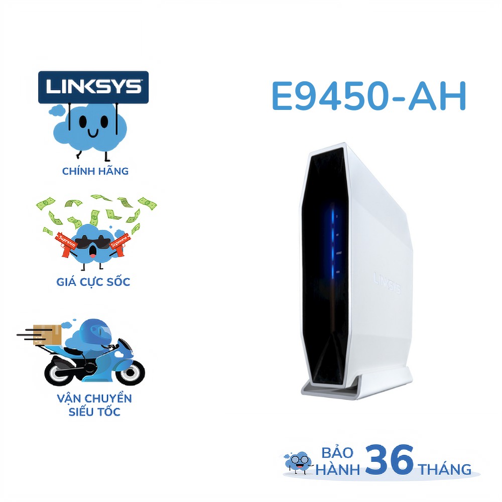 LINKSYS E9450-AH MAX-STREAM AX5400 DUAL-BAND EASY MESH WIFI 6 MU-MIMO GIGABIT ROUTER• Wi-Fi chuẩn AX tốc độ 5400Mbps, stream 4K/8K Video-Game-Binge