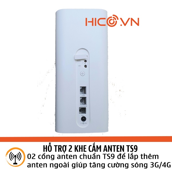 - 02 cổng anten chuẩn TS9 để lắp thêm anten ngoài giúp tăng cường sóng 3G/4G.