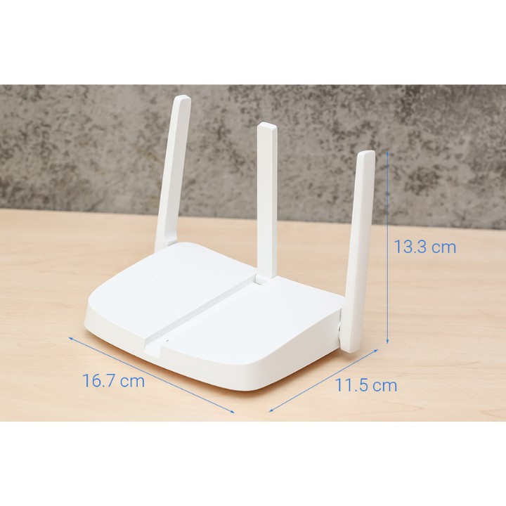 - Router Mercusyscó kích thước khá nhỏ gọn chỉ cao 13.3 cm và rộng 16.7 cm, không chiếm quá nhiều diện tích lắp đặt, thuận tiện di chuyển khi cần.