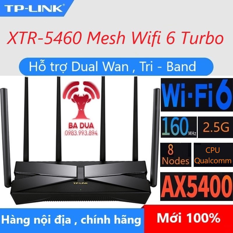 Bộ Phát Wifi Mesh Wifi 6 Dual Wan ba băng tần Tri band Turbo 2.5G Gigabit Tplink TP-Link XTR5460 AX5400