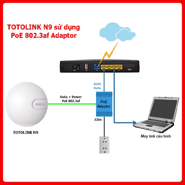 Máy tính & Laptop > Thiết Bị Mạng > Bộ Phát Wifi || [Mã 273ELHA100K0 hoàn 7% đơn 500K] Bộ phát Wifi ốp trần Totolink N9-V2 chuẩn N 300Mbps - Chính HãngCòn hàng