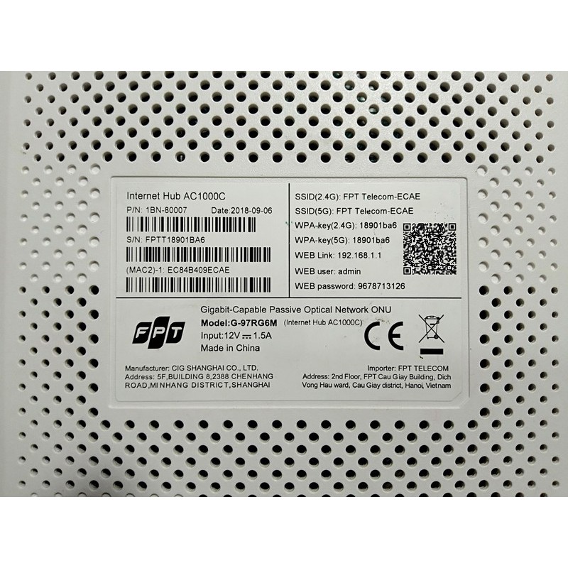 Máy tính & Laptop > Thiết Bị Mạng > Bộ Phát Wifi || Bộ Phát Wifi Quang G-97RG6M internet Hub AC 1000C 2.4G,5G F.P.T- Wifi Gigabit G-97RG6M Chính Hãng (Cũ)Còn hàng
