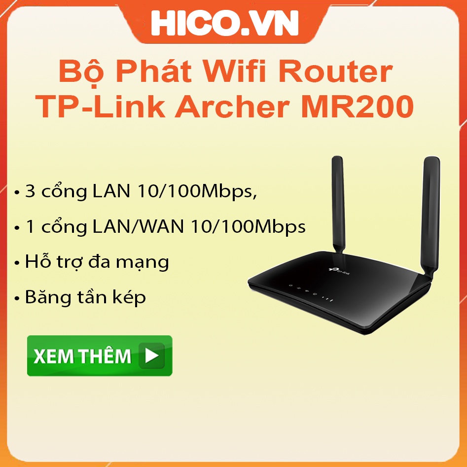 Máy tính & Laptop > Thiết Bị Mạng > Bộ Phát Wifi || [Mã 273ELHA100K0 hoàn 7% đơn 500K] Bộ Phát Wifi Router 4G LTE Băng Tần Kép AC750 TP-Link Archer MR200 - Hàng Chính HãngCòn hàng
