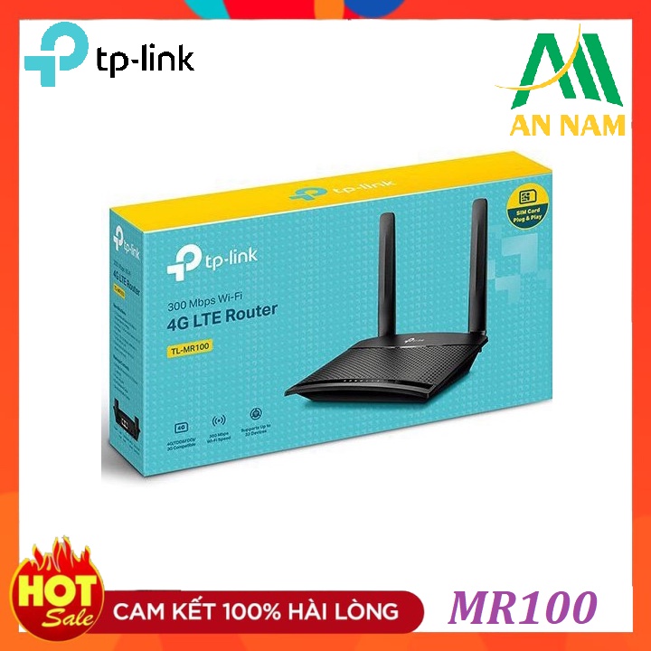 Bộ Phát WiFi Router 4G LTE MR100 TPLink Có Cổng LanBộ phát wifi TP-Link TL-MR100 300Mbps, Khe sim 3G/4G