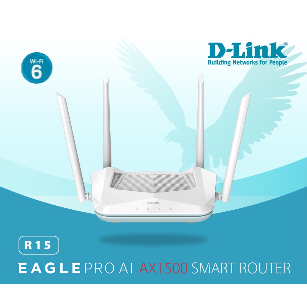 Bộ Phát Wifi Router thông minh chuẩn Wi-Fi 6 Gigabit Băng Tần Kép AX1500 -D-Link Eagle Pro AI R15 - AX 1500Mbps