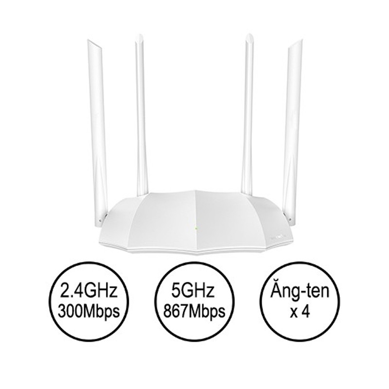 - Tenda AC5 V3 hỗ trợ băng tần kép 2.4GHz và 5GHz giúp khả năng truy cập internet vượt trội và ổn định.
