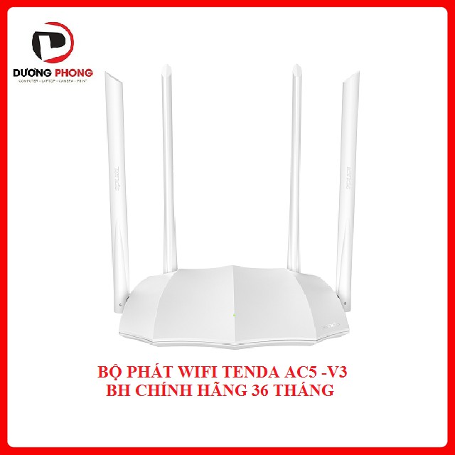 Máy tính & Laptop > Thiết Bị Mạng > Bộ Phát Wifi || [Mã 253ELSALE hoàn 7% đơn 300K] Bộ phát Wifi Tenda AC5 Chuẩn AC1200 - V3 Trắng - 4 Ăngten - BH36 Tháng Chính hãngCòn hàng