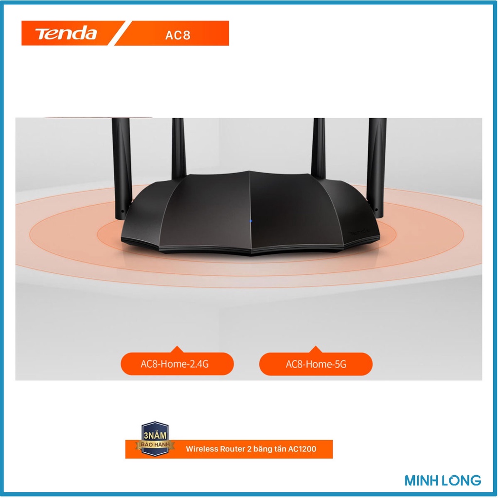Phát Wifi Tenda AC8 Chính hãng (4 anten 6dBi, 1200Mbps, 2 băng tần, Repeater, 3 port 1Gbps). VI TÍNH QUỐC DUY