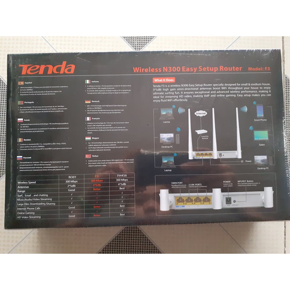 Phát Wifi Tenda F3 Chính hãng (3 anten, 300Mbps, Repeater, 3LAN). Hàng Chính Hãng. Vi Tính Quốc Duy