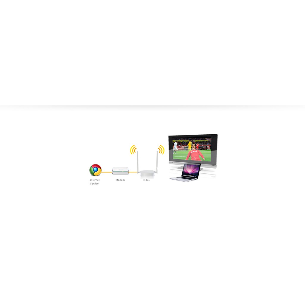 Bộ định tuyến dễ cài đặt N300 không dây N301 được thiết kế để hộ gia đình cài đặt dễ dàng hơn. Sản phẩm này tương thích với IEEE802.11n, cung cấp tốc độ không dây lên tới 300Mpbs, hoàn hảo cho các hoạt động truy cập mạng hàng ngày như gửi email, chat, xem video, chơi game trực tuyến và nhiều hơn nữa. Sản phẩm N301 cũng có thể hoạt động như bộ định tuyến máy khách để kết nối mạng ISP không dây hoặc uplink AP để chia sẻ Internet tới mọi ngóc ngách, loại bỏ các ứng dụng dễ bị đứt mạng.