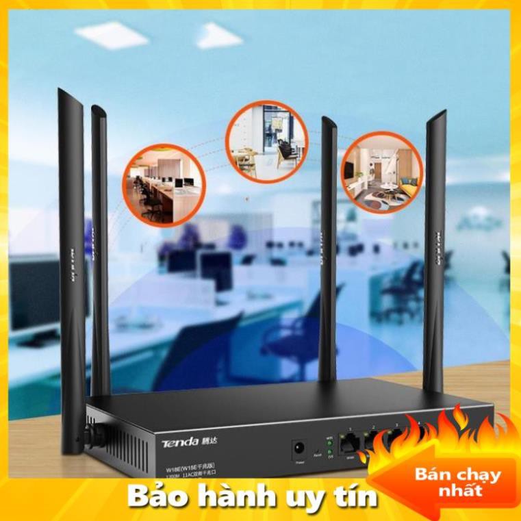 Bộ phát WIFI Tenda w15e ac1200Mps mạng doanh nghiệp 50 user - vùng phủ sóng 300m2 4 ăn ten phát sóng cực mạnh - nhập khẩ