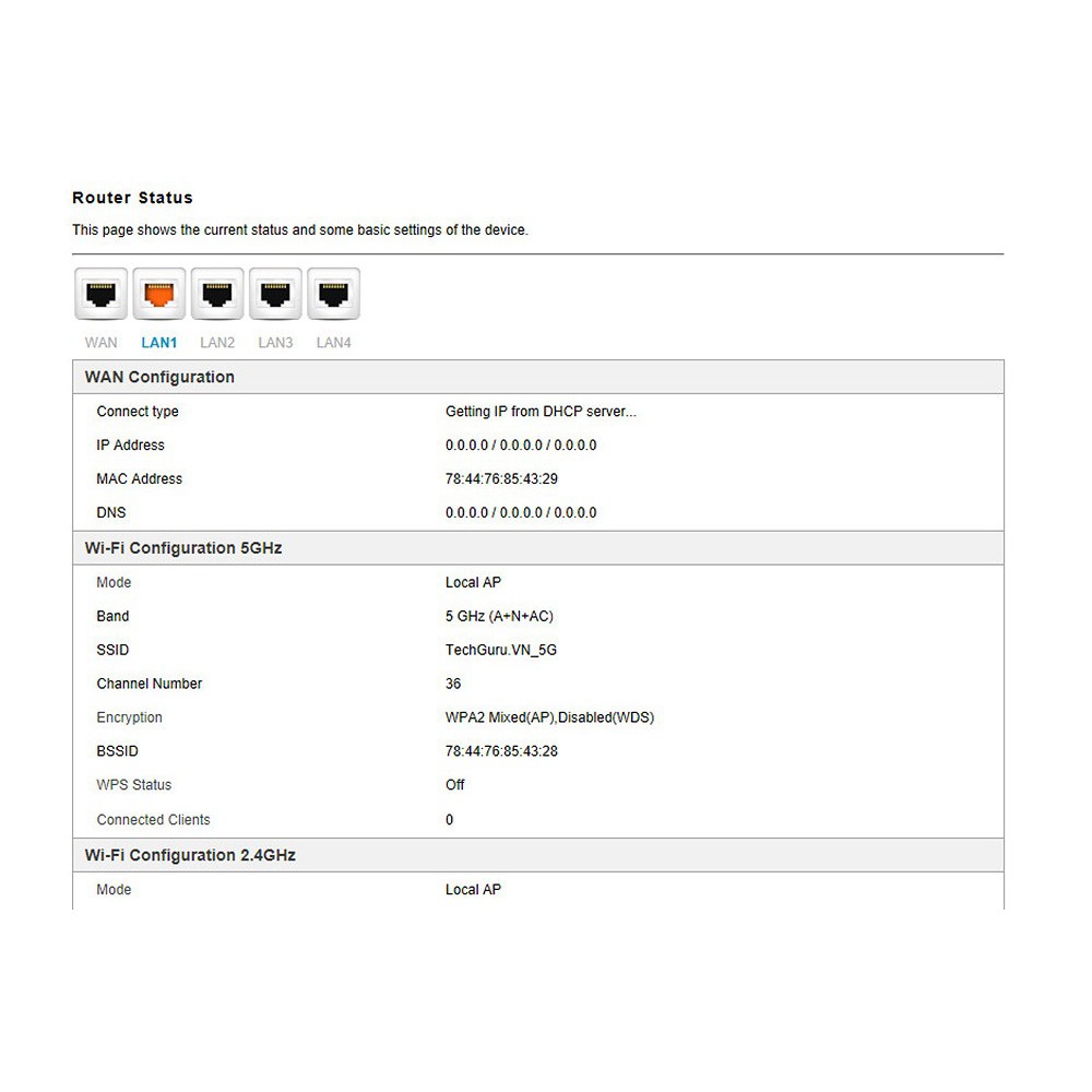 Số thiết bị kết nối tối đa: 20 Clients wifi cho mỗi băng tầng (20 cho 2.4Ghz và 20 cho 5Ghz) kết nối cùng lúc, có thể giới hạn số lượng người kết nối