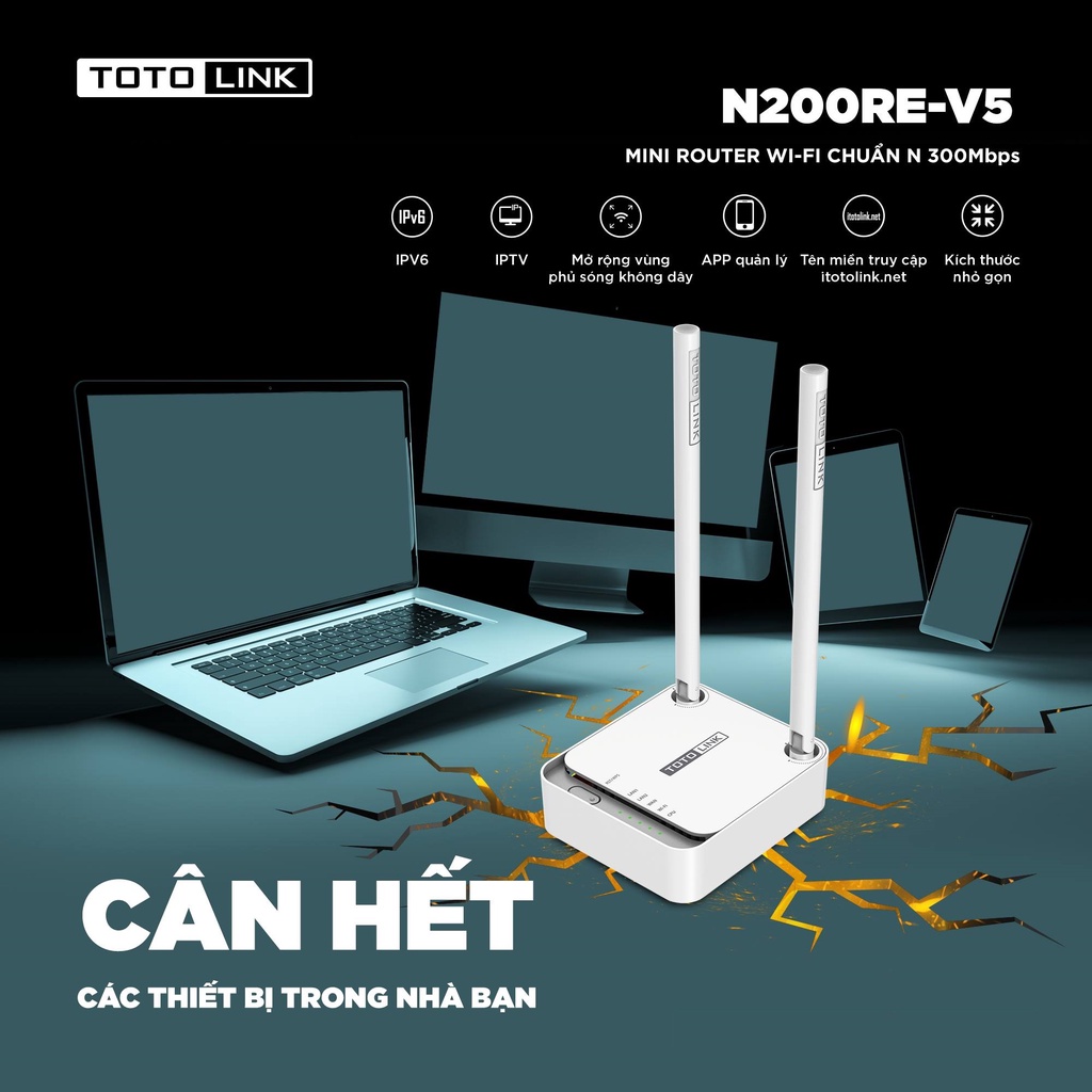 Máy tính & Laptop > Thiết Bị Mạng > Bộ Phát Wifi || Bộ phát wifi Totolink N200RE_V5 chuẩn N - router chế độ hoạt động Repeater, AP dành cho căn hộCòn hàng