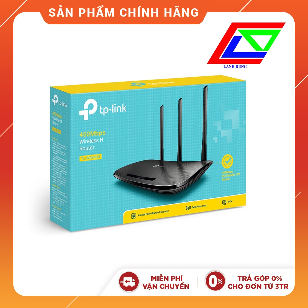 Thiết bị mạng/ Router TPLink TL-WR940N (Router)Router không dây chuẩn N TL-WR940N tốc độ 450Mbps là một thiết bị kết nối mạng kết hợp tính năng không dây/có dây được thiết kế đặc biệt để phục vụ cho nhu cầu sử dụng mạng trong nhà và văn phòng nhỏ. Được tích hợp công nghệ MIMO, thiết bị này có thể tạo ra một hiệu suất truyền tải không dây tiên tiến và rất đặc biệt, qua đó giúp cho người dùng có được một sự lựa chọn sáng suốt khi họ muốn xem các video HD trực tuyến, thực hiện các cuộc gọi VoIP và chơi game trực tuyến. Bên cạnh đó, với nút thiết lập bảo mật nhanh (WPS) đảm bảo việc mã hóa bảo mật WPA2, qua đó chống loại bất kì sự xâm nhập nào từ bên ngoài.