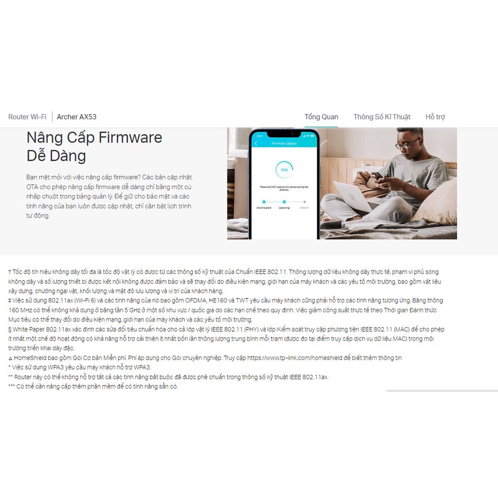 Máy tính & Laptop > Thiết Bị Mạng > Bộ Phát Wifi || Bộ phát wifi tp link archer ax53, router wifi 6 chuẩn ax3000mpbs, băng tần kép tốc độ cao, hàng chính hãngCòn hàng