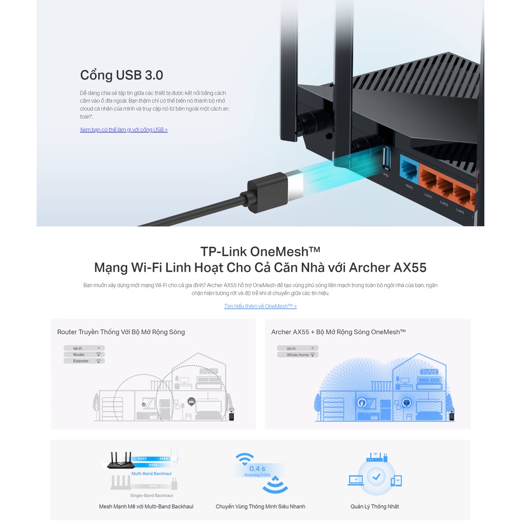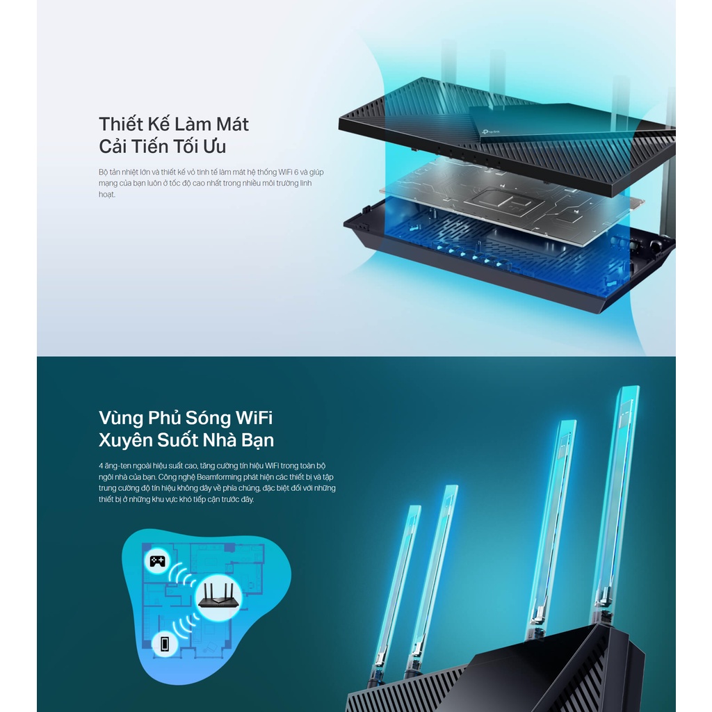 Máy tính & Laptop > Thiết Bị Mạng > Bộ Phát Wifi || [Mã ELMALL10 giảm 10% đơn 500K] Bộ Phát Wifi TP-Link Archer AX55 Chuẩn Wifi 6 AX3000Còn hàng