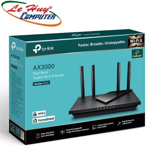 Máy tính & Laptop > Thiết Bị Mạng > Bộ Phát Wifi || Bộ Phát Wifi TP-Link Archer AX55 Băng Tần Kép AX3000Mbps Wifi 6Còn hàng