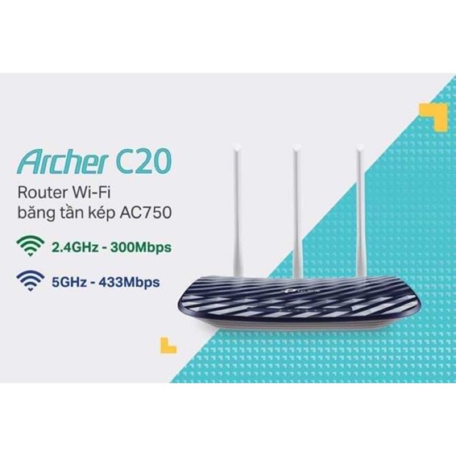Phát Wifi TP-Link Archer C20 Chính hãng (3 anten, 733Mbps, 2 băng tần, Repeater, 4LAN). VI TÍNH QUỐC DUY