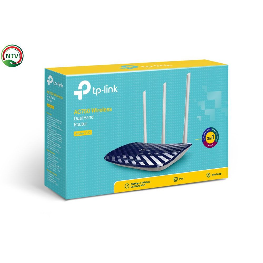Bộ Phát Wifi Tp Link Archer C20 AC750 Băng Tần Kép 3 Râu Chính Hãng TAKO.
