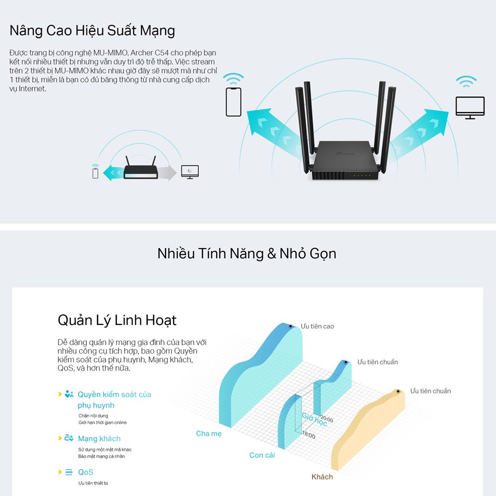 🏷️ BỘ PHÁT WIFI TP-LINK ARCHER C54 BĂNG TẦN KÉP CHUẨN AC 1200Mbps📌 TÍNH NĂNG NỔI BẬT: