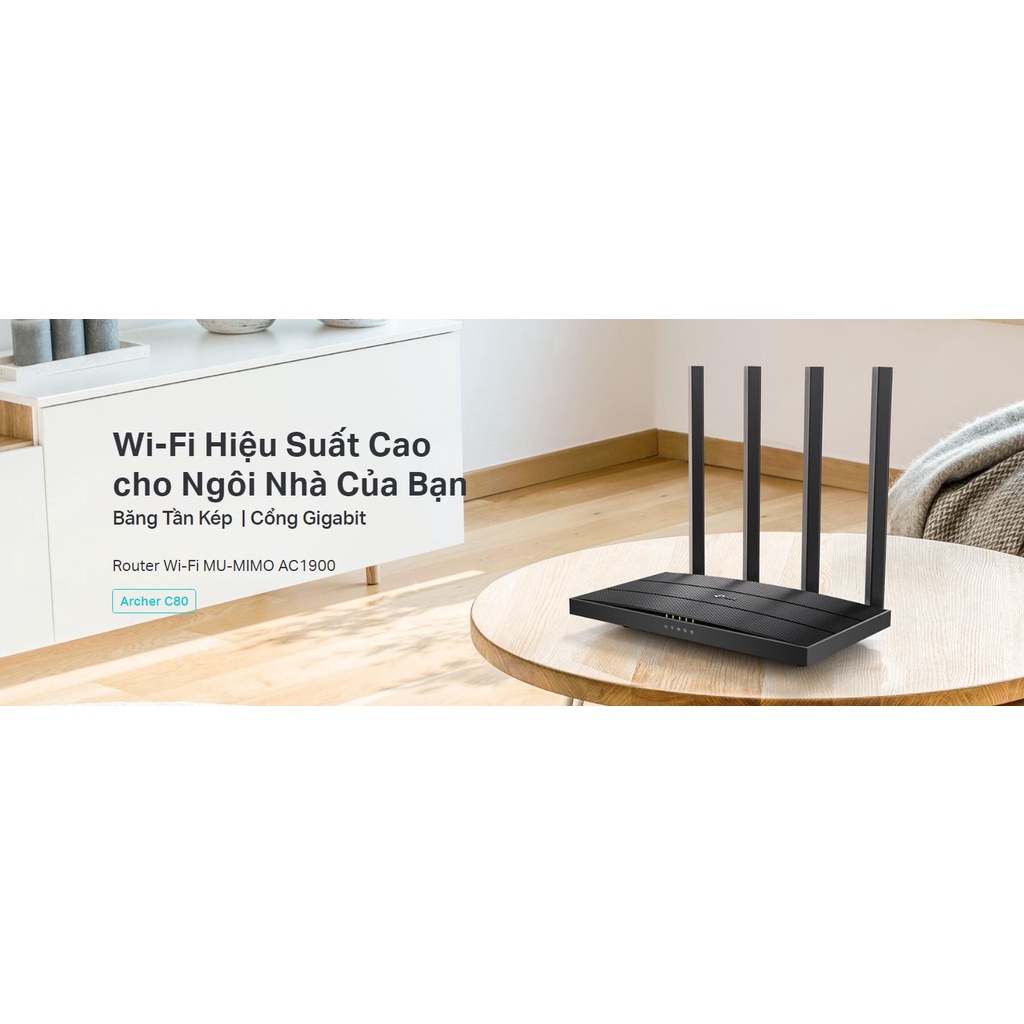 Bộ Phát Wifi TP-Link Archer C80 Công Nghệ MU-MIMO 3x3 Băng Tần Kép Chuẩn AC1900 - Hàng Chính Hãng