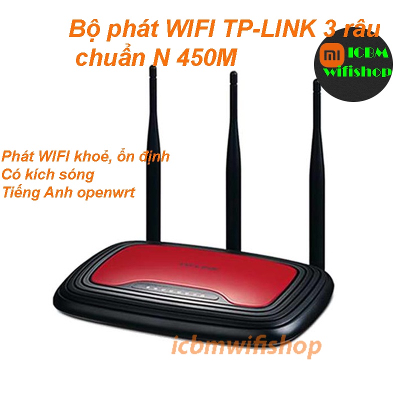 Máy tính & Laptop > Thiết Bị Mạng > Bộ Phát Wifi || Phát wifi Tp-link chuẩn N 450Mbps xuyên tường 3 râu, rom OpenwrtCòn hàng