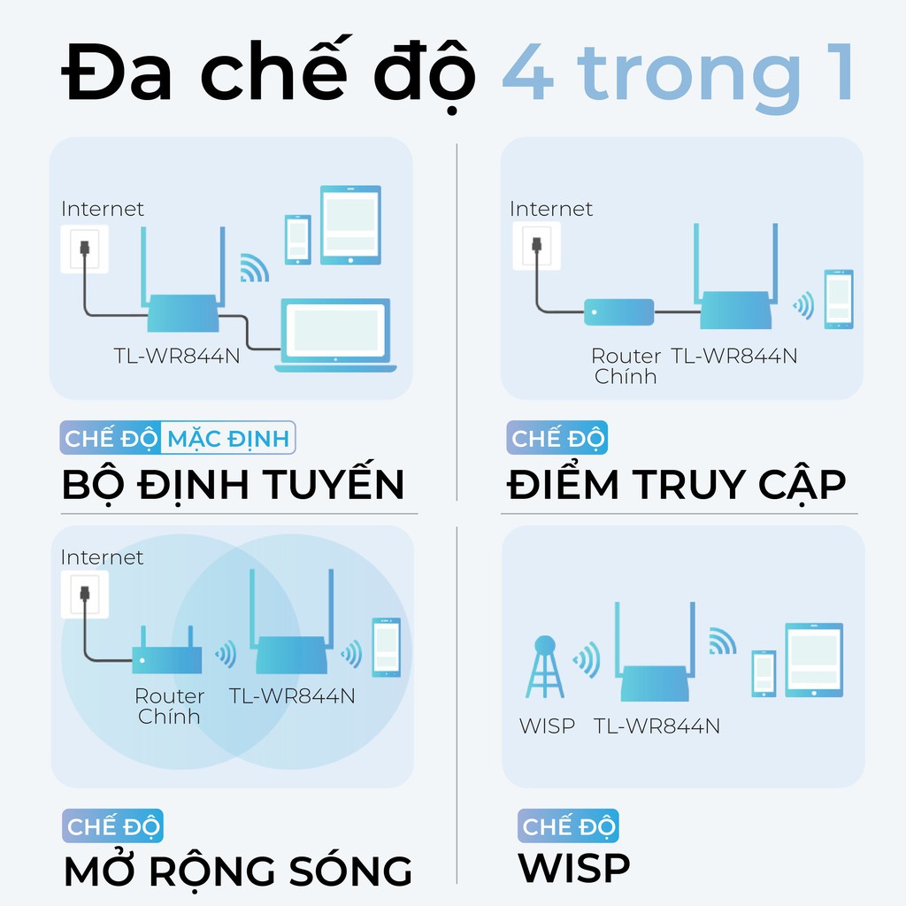 🏷️ BỘ PHÁT WIFI CHUẨN N 300Mbps ĐA CHỨC NĂNG 4 IN 1 TL-WR844N📌 TÍNH NĂNG NỔI BẬT: