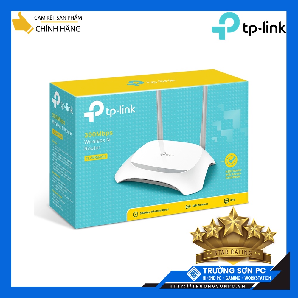 Router Chuẩn N Không Dây tốc độ 300Mbps thương hiệu TP-LINK model TL-WR840N là thiết bị kết nối mạng có dây / không dây kết hợp thiết kế đặc biệt dành nhu cầu mạng văn phòng doanh nghiệp nhỏ và gia đình. TL-WR840N cho một hiệu suất không dây đặc biệt và tiên tiến do đó lý tưởng cho việc trải nghiệm video HD, VoIP và chơi game trực tuyến. Ngoài ra, nút WPS (Wi-Fi Protected Setup) bên ngoài có kiểu dáng đẹp và thời trang cũng góp phần đảm bảo việc mã hóa WPA2 và ngăn chặn sự xâm nhập mạng từ bên ngoài.