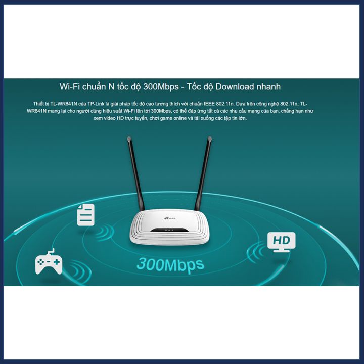 - Router wifi tốc độ chuẩn N lên đến 300Mbps, rất thích hợp cho các công việc hằng ngày và các tác vụ yêu cầu độ nhạy cao như xem video HD, chơi game online, tải các tập tin lớn