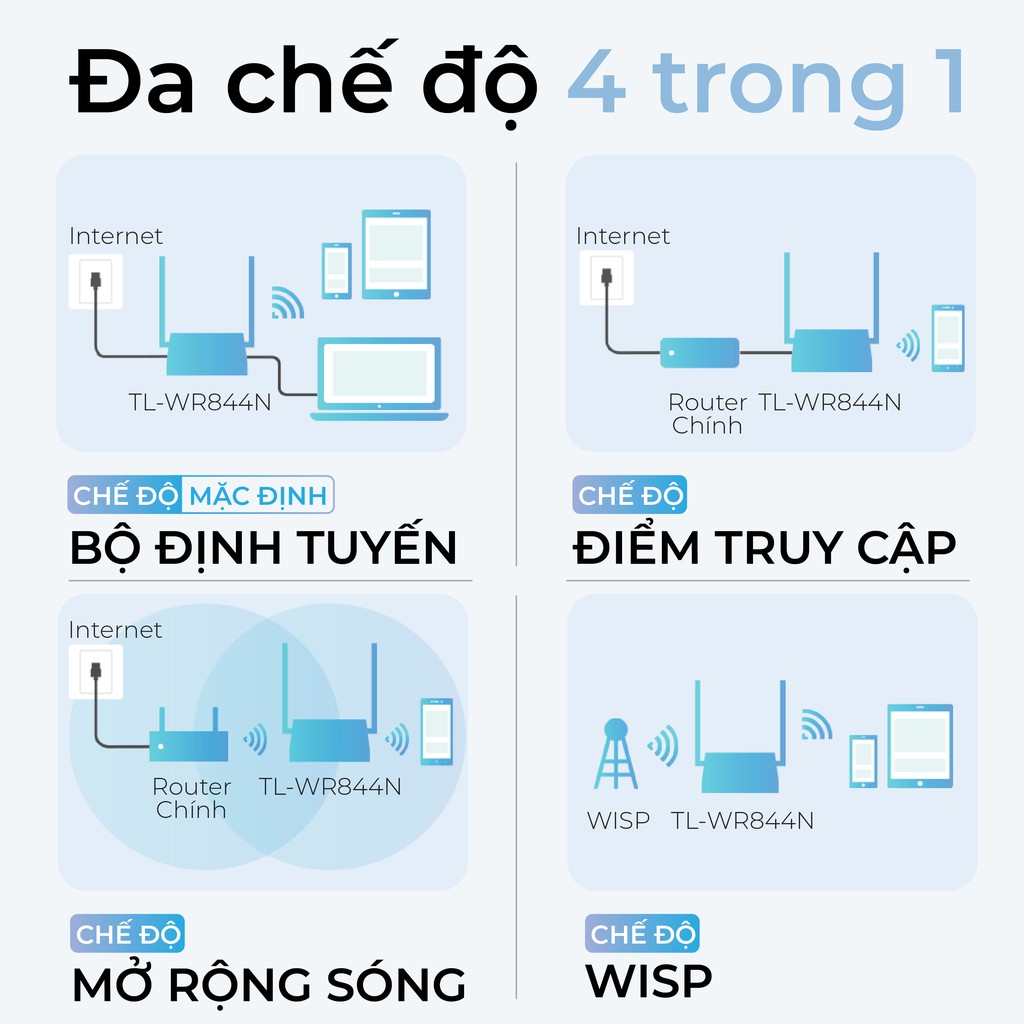 🏷️ BỘ PHÁT WIFI TP-LINK TL-WR844N CHUẨN N 300Mbps ĐA CHỨC NĂNG 4 IN 1📌 TÍNH NĂNG NỔI BẬT: