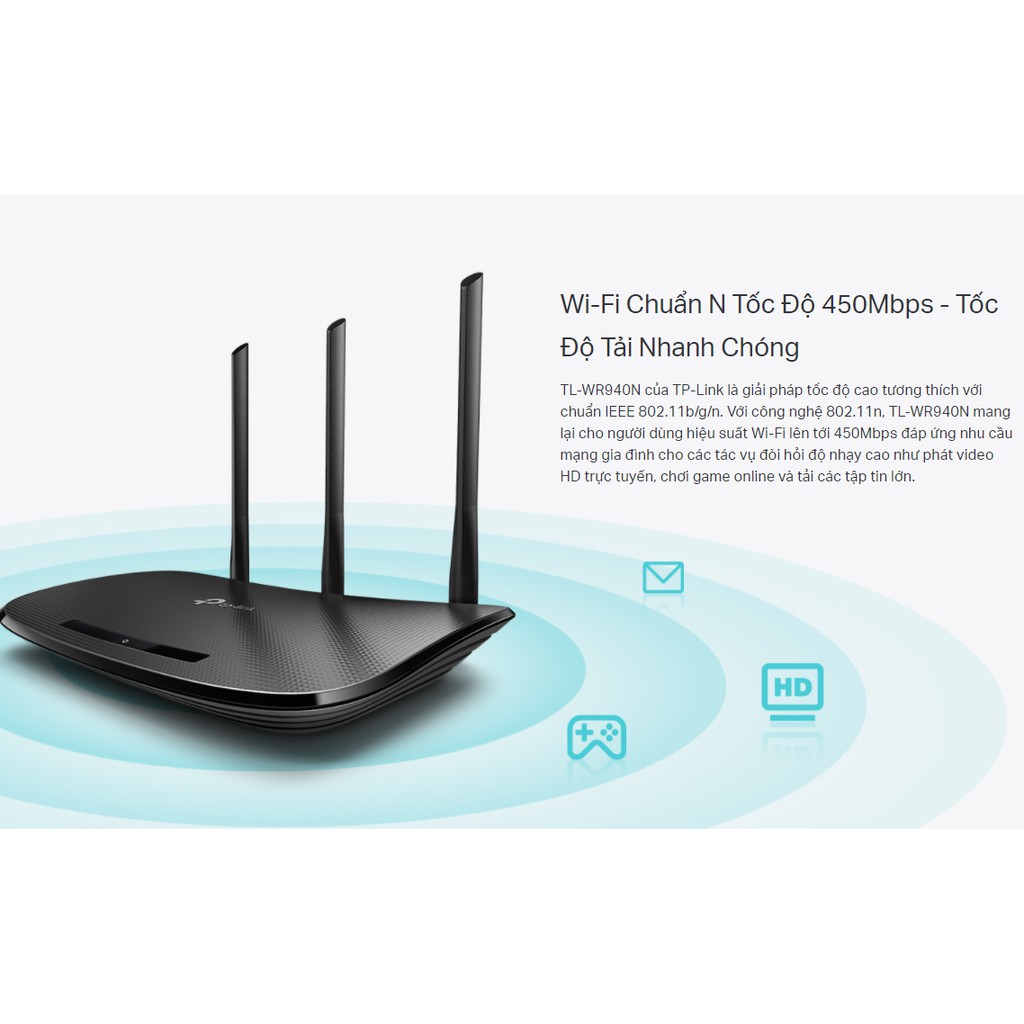Bộ Phát Wifi TP-LINK TL-WR940N - Router Wifi Chuẩn N Tốc Độ 450Mbps