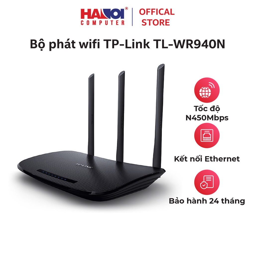 Máy tính & Laptop > Thiết Bị Mạng > Bộ Phát Wifi || Bộ phát wifi TP-Link TL-WR940N Wireless N 450Mbps, Cài đặt mã hóa bảo mật không dây dễ dàngCòn hàng