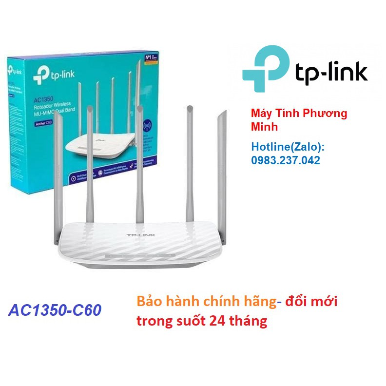 Bộ Phát Wifi TPLink Archer C60 AC1350 - Router Wifi Băng Tần Kép 5 Ăngten - Hàng Chính Hãng bảo hành 24 tháng