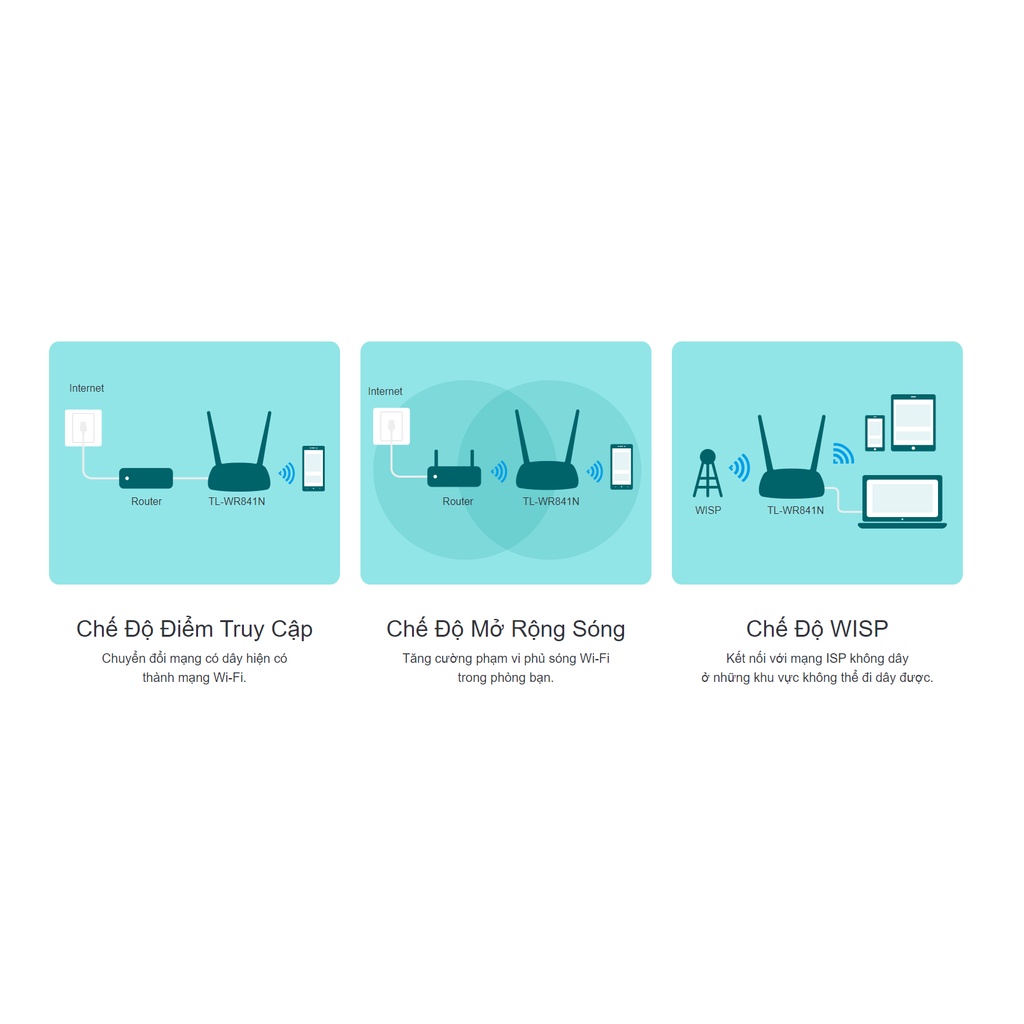 Bộ phát wifi WIFI TP-Link WR841N sẵn sàng đáp ứng nhu cầu sử dụng WIFI ngày càng cao của các hộ gia đình với những tính năng cơ bản như phát sóng mạnh, khả năng làm repeater thu phát sóng, làm bộ định tuyến không dây...Với router này bạn dễ dàng truy cập Internet để làm những gì mình thích.Hướng dẫn lắp và cài đặt WIFI tP-Link WR841N làm Router: