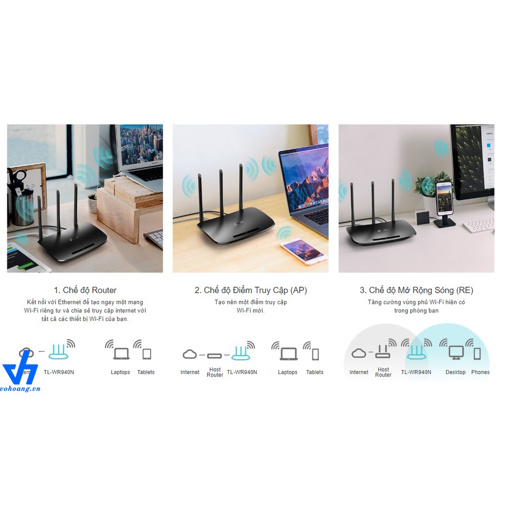 Bộ Phát Wifi TPLINK WR 940N 450Mbps - 3Anten- Hàng Chính Hãng 100%, Bảo Hành 2 Năm