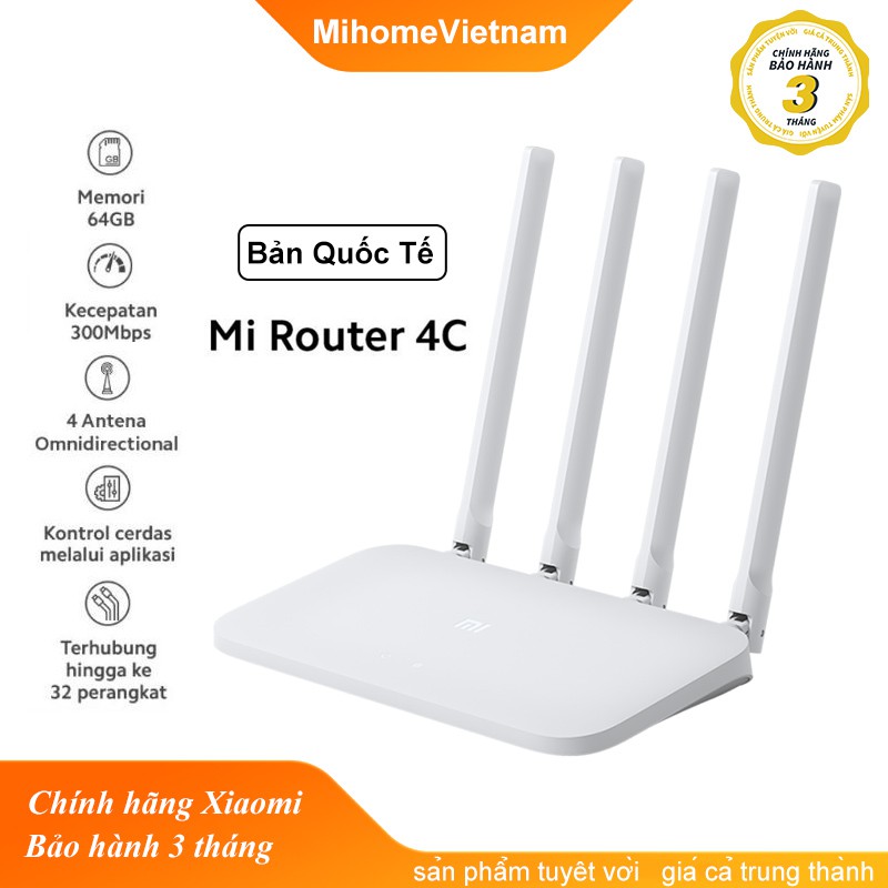 Bộ phát wifi Router Xiaomi 4C được phát hành giữa năm 2018. Với điểm mạnh là được rút gọn giá chỉ hơn phân nửa so với gen 4, đây chính là một bộ phát wifi “hộ gia đình” siêu ổn định với mức giá tầm trung hấp dẫn mà bạn không thể bỏ qua.Thông số Bộ phát wifi Router Xiaomi 4C