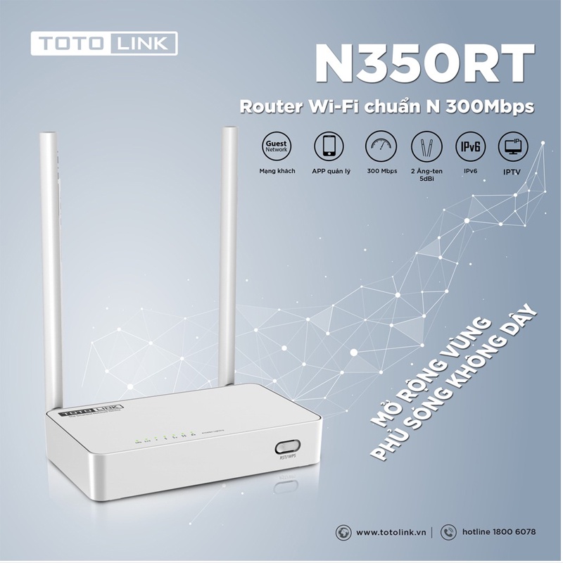 ✅ Bộ Phát Wi-Fi chuẩn N 300Mbps Totolink N350RT 4 cổng LAN: