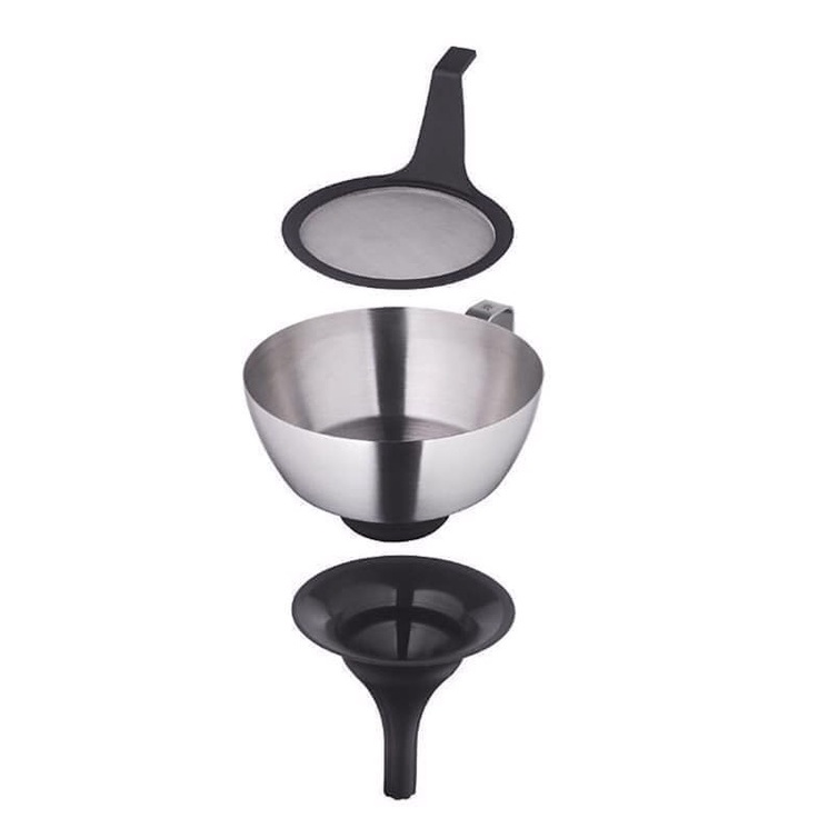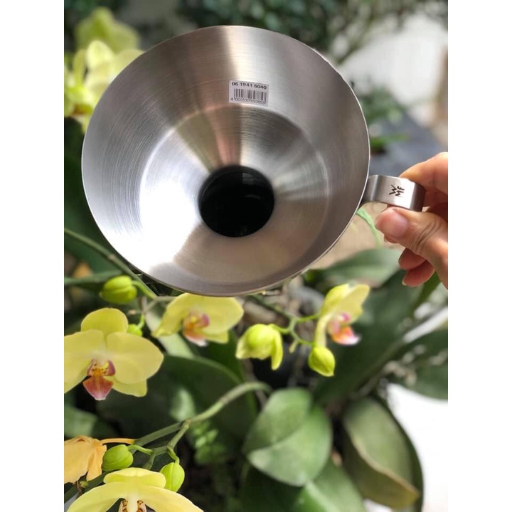 - Phễu lọc WMF cổ điển với phễu giảm và bộ lọc có thể tháo rời. Lý tưởng để rót nước đóng chai.