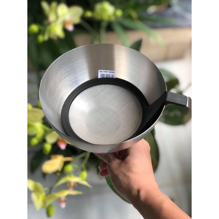 - Gắn bộ phận rây vào phễu inox WMF dùng để lọc hạt, lọc cặn, lọc bã làm sữa hạt, tiện hơn so với loại rây lọc cầm tay nhiều ạ