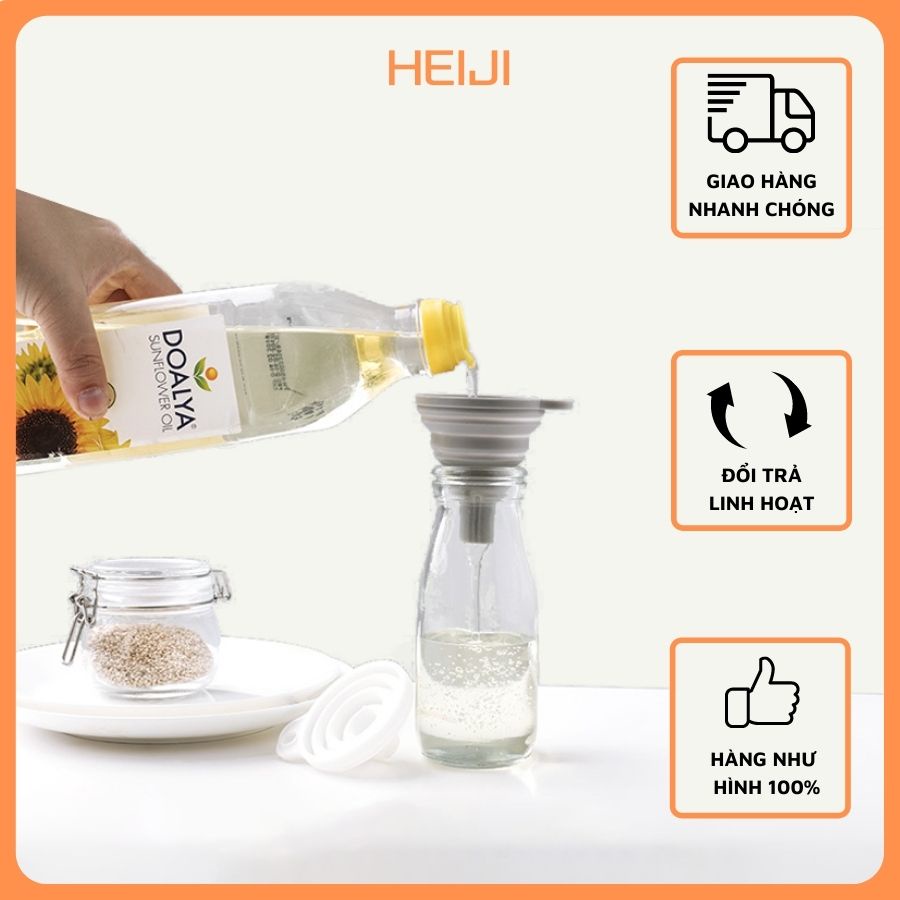 Phễu chiết dầu ăn HEIJI gọn nhẹ siêu tiện dụng, phễu chiết silicon dùng để chiết sữa, chiết mỹ phẩm, sữa tắm...======================