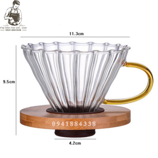 Phễu Gỗ Có Tay Cầm Pha Cà Phê V60Chất liệu: thuỷ tinh cao cấp, đễ gỗ, ron silicone