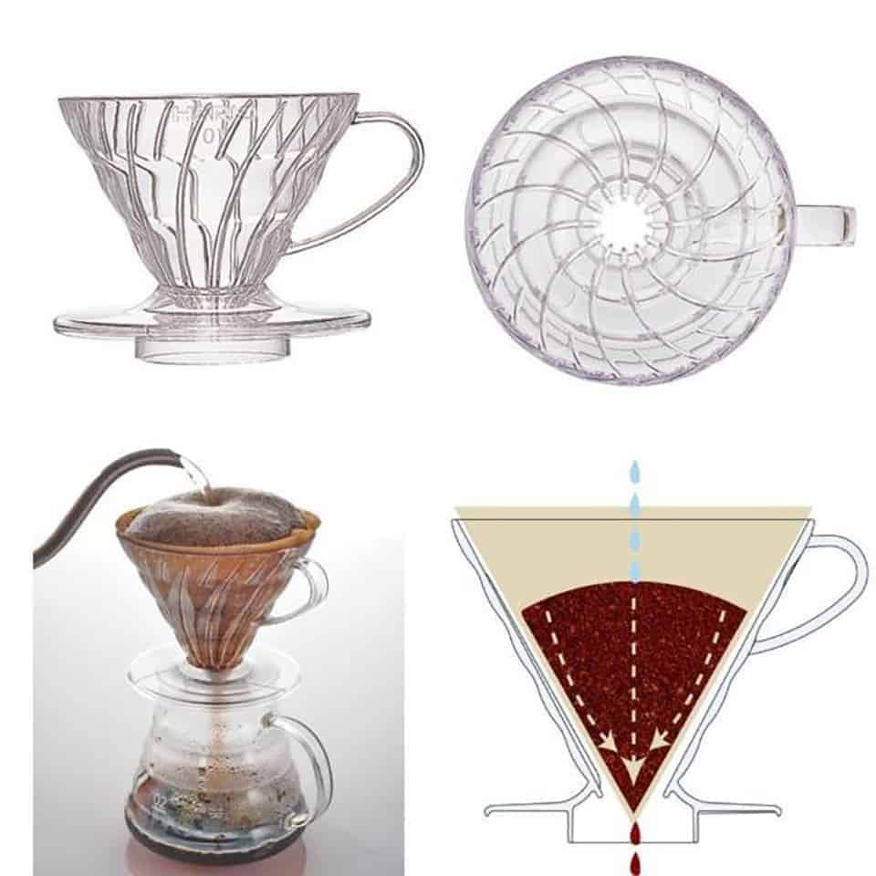 Giới thiệu Phễu Lọc Cà Phê Hario V60 Nhựa Trong | 1-2 cups (size 01) và 3-4 cups (size 02)