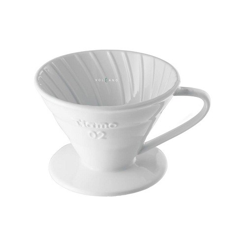 Phễu V60 sứ phù hợp sử dụng với giấy lọc cà phê của hãng Hario , Akirakoki , Cafede Kona cùng cỡ