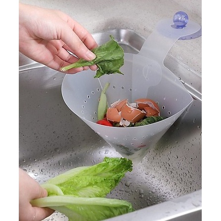 Ngoài công dụng chính là lọc rác, lọc thức ăn thừa, bạn có thể dùng phễu này để đựng các dụng cụ cọ rửa bát đĩa cho gọn gàng chỗ quầy rửa.