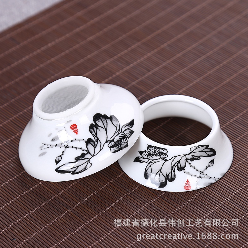 Phễu lọc trà bằng sứ- Hàng hoàn toàn thủ công. Với nước men trắng bóng, thành gốm mỏng tang, được lựa chọn loại đất cao lanh loại 1. Trải qua kinh nghiệm làm gốm đỉnh cao hơn ngàn năm lịch sử của người Phúc Kiến - là nơi chuyên chế tác đồ mỹ nghệ cho vua chúa. Sản phẩm dù nhỏ bé nhưng đều được nung ở nhiệt độ 1300 độ C. Nên rất bền.