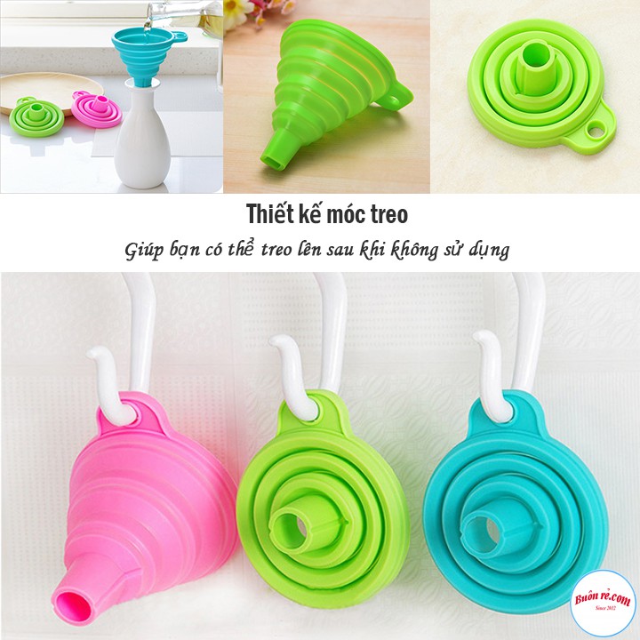 Phễu Silicone Gấp Gọn Tiện DụngĐể rót các loại dung dịch lỏng khác nhau mà không bị vương ra ngoài thì bạn cần phải chọn mua một chiếc phễu. Phễu Silicone Gấp Gọn được thiết kế độc đáo với miệng phễu rộng, cuống phễu khi rút dài đến 7cm giúp bạn rót các loại dung dịch lỏng không bị trào ngược quai lại. Đặc biệt, Phễu Silicone Gấp Gọn có thể gấp gọn lại khi không sử dụng, giúp tiết kiệm không gian hay dễ dàng mang theo